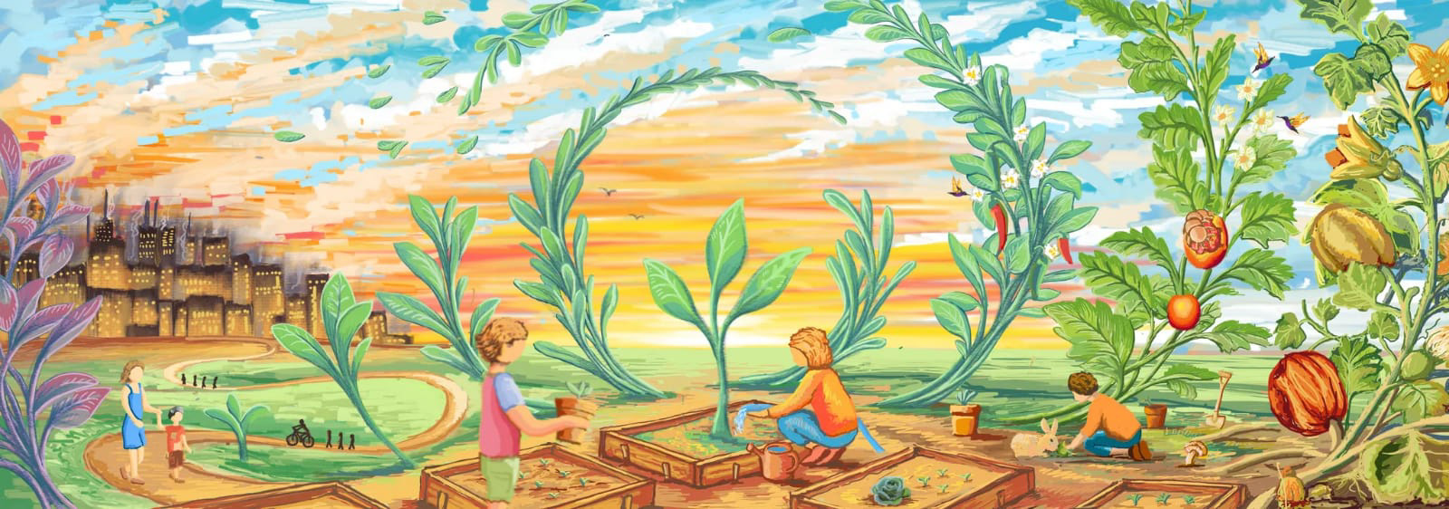 Este mural comenzó con la iniciativa de un grupo de jóvenes llamado Bluhm Team, quienes han creado su propio huerto comunitario en varios puntos de la ciudad para fomentar la cultura de la composta y el reciclaje.