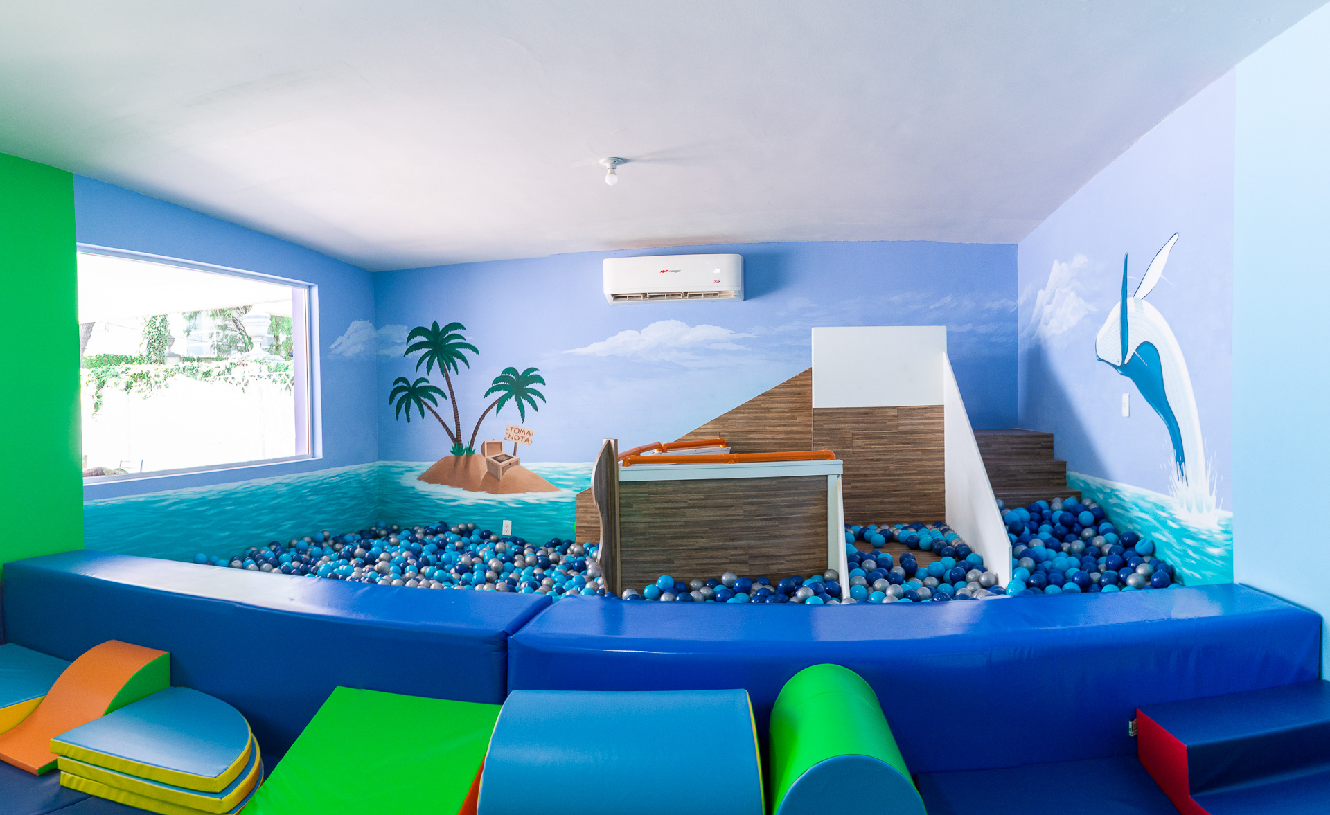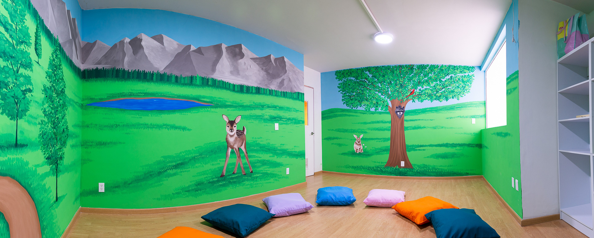 Los tres espacios han sido denominados; "Cuarto de cuentos", "Salón neuromotor" y "Jardín de mini ciudad" respectivamente, complementando las actividades lúdicas y de aprendizaje de cada clase.